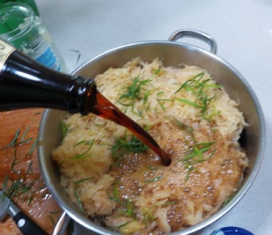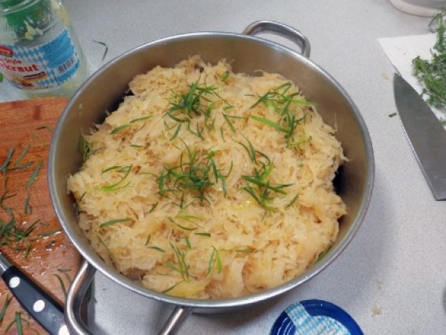 To that end you want an adequate amount of sauerkraut. We prefer jars of European kraut. The American kind is too sharp, lacks flavor and is overwhelming. If you are using cheap and generic kraut it is advisable to drain and lightly wash it. This takes out the heavy brine flavor. Do not wash or drain high end gourmet kraut.