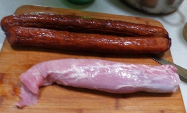 Any form of pork is fine. In this case we used pork tenderloin. But pork chops, roast, butt or shoulder works just fine. It’s key however to cover the meat with sauerkraut. We like to add sausages and enough for more than on meal. Marinated it is even better on the second or third night.