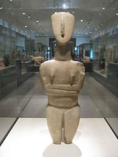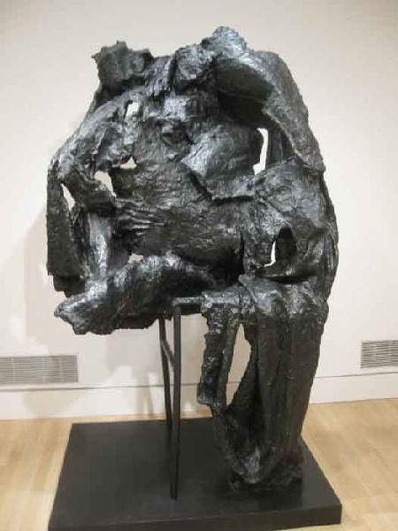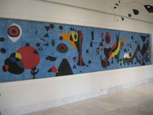 Like most museums founded in the 19th century Cincinnati strove to be encyclopedic. This resulted in a pastiche of ancient works from Egypt, the Cycladic Islands, Greece, and Rome. We run through a gauntlet of these works displayed in rows of parallel display cases that lead us from the entrance of the museum to the older original wing. It was not a compelling experience to browse through this detritus. From the great hall one veers off to a smattering of African art to the left. On the right, on the way to the cafeteria, one discovers a major mural by Miro which was commissioned in 1947 for the Terrace Plaza Hotel and later donated to the museum. Miro made his first American trip to view the site.