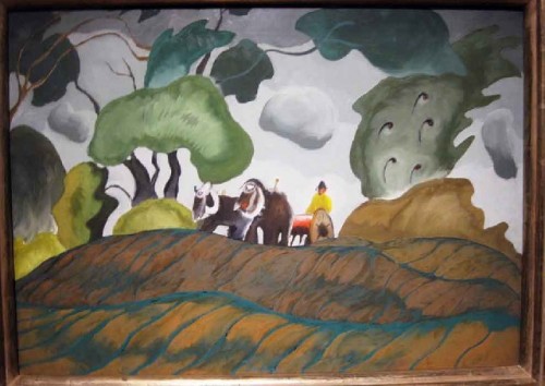 But picking through the collection there are seminal works such as Daughters of the American Revolution by Grant Wood, a typical Moses Soyer nude, the interesting and rarely seen Yasuo Kuniyoshi, a stunning Maxfield Parrish painting of a tree, a farm scene by John Steuart Curry and works by important African American artists Jacob Lawrence, Horace Pippin, the 19th century painter Henry Osawa Tanner and the sculptor Edmonia Lewis.