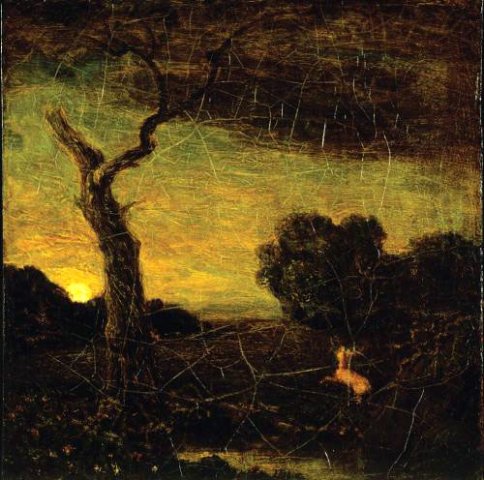 We were equally astonished by a rare encounter with “Stag in the Forest of Arden” (ca. 1897) by Albert Pinkham Ryder. The small, dark, cracked painting is in terrible shape which attests to its authenticity. The eccentric visionary defied all the conventional rules and techniques for painting. Fewer than 300 works have survived and there are more than a thousand fakes. That made this encounter/ discovery all the more rare and wonderful.