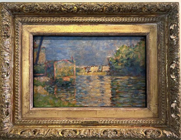 Georges Pierre Seurat (1859-1891) worked slowly and died young. His small sketch “Banks of the Seine near Courbevoie” (ca. 1883) is an interesting snapshot and modest footnote to a stunning collection.