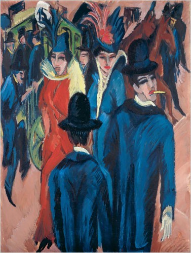 Never once does Lulu dominate one of these characters, although she does occasionally get money from them. The stage scene calls to the mind’s eye German Expressionist Ernst Ludwig Kirchner's Street Scenes series, created between 1913 and 1915, about the same time Wedekind wrote his Lulu plays. Kirchner rebelled against the confining principles of academic painting and the rules of bourgeois society. His acute perspectives, jagged strokes, dense angular forms, and caustic color feel like a visual translation of Berg’s music. Both are filled with vitality, decadence and an underlying mood of danger.