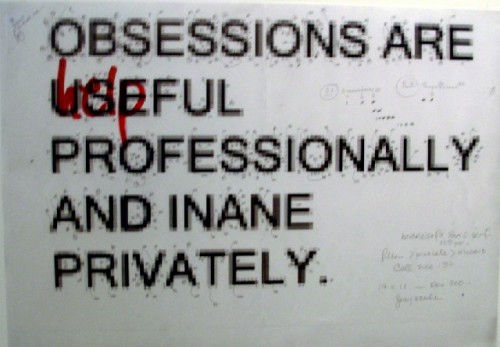"Obsessions are helpful professionally and inane privately" a quotation of Stefan Sagmeister, the well-known Pop graphic designer is the center of a group of work, by a crew of artists, at the back of the building on the first floor. Around this canny and unnerving utterance is built a whole section of the Biennale, including heterogeneous pieces by for example Marie Leviel, Valerie Bouvrette, and Augustina Woodgate, all of which along with the others incorporate Sagmeister's words as text, and which appear to synthesize, alone and in ensemble, various thoughtful emotional timbres to the great composer's tune. Thinking about thinking about art about art is fun as it turns out.