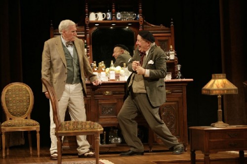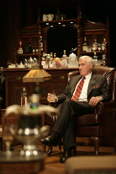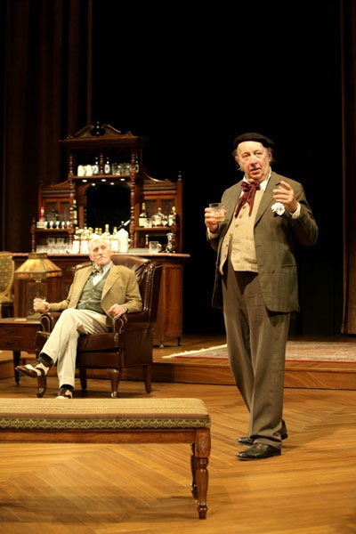 Which is, in fact, a more than apt analogy as the drama revolves around Hirst (Paul Benedict) a legendary author tied up in the Gordian knot of fame and memory which has rendered him dottering and unproductive and a bar rat, ersatz poet, Spooner, (Max Wright) whom he has dragged home from a pub for a nightcap. And another, and another, and another until Hirst literally falls down drunk and drags himself along the floor to a bedroom. In this play the two main characters, drink, and drink, and then drink some more. Never on stage has one seen more of the malt consumed in a single evening.