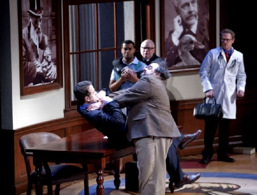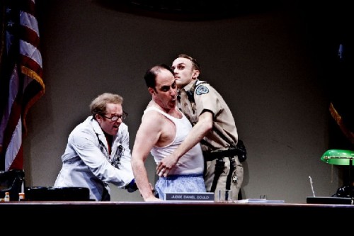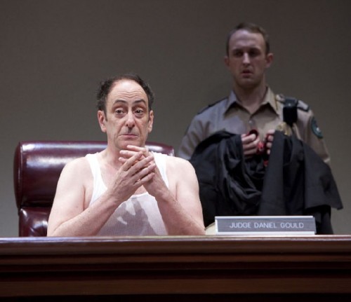 As always with an ART production the greatest delight is the manner in which its marvelous company of actors have been adapted to the play. The casting of Will LeBow as the deranged, pill popping, total gonzo judge is particularly inspired. As the play progresses, in an allegory of blind justice, the judge becomes ever more deranged. This culminates with the judge taking his clothes off in court and having to be subdued by a doctor.