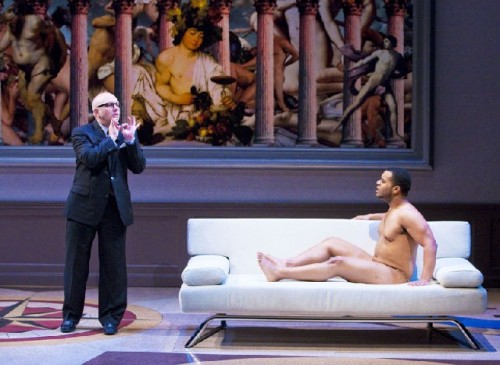 Some clues to the madcap performance were provided during a VIP reception for patrons and friends in the lobby prior to curtain. Having nearly completed her first full season as artistic director of ART, Diane Paulus, who has been nominated for a Tony Award for directing the Broadway revival of "Hair," offered some background. As did Gideon Lester the director for the 2008/2009 season.