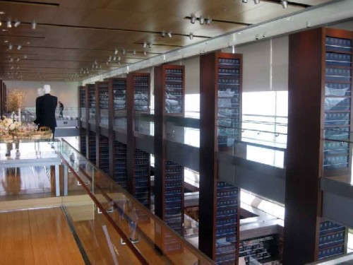The rather straight forward ground plan has alcoves organized thematically. The walls separating sections house generic document boxes. Thousands of them. They contain actual documents. While they are catalogued and may be viewed on request they are deemed to be the least likely to attract attention from researchers.