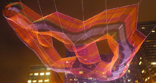 Internationally recognized Brookline resident Echelman’s team included aeronautical and mechanical engineers, architects, lighting designers, landscape architects, and fabricators. Though this was her first major Boston commission, she has previously completed major commissions and installations in Amsterdam, Sydney, Portugal, India, Vancouver, Singapore, as well as in numerous cities across the United States.