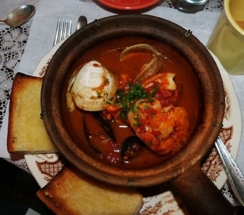G1 I enjoyed meeting your old friend Alice. In the past you have regaled us with many tales some of which perhaps are not fit for mixed company. I had the cioppino which I ordered because she lives in Provincetown. There’s a whole fishing fleet there of Italian descent. (Portugese actually) So she knows fish. It was very good. Nicely spiced and not too hot. There was an interesting combination of a tomato base and herbs. There were shrimp, mussels, clams and fish. There was toasted garlic bread which is appropriate. We didn’t get a side of vegetables which the menu indicated came with the entrees.
