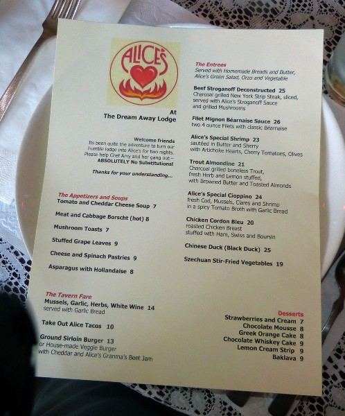 Alice’s at Dream Away Lodge