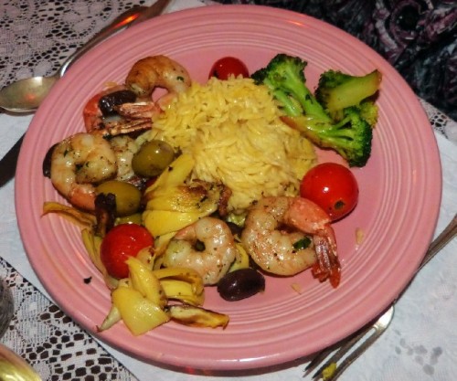 SP1 Alice’s Restaurant was really a wonderful evening for most of us. We had fun. My trout almondine was very nice. My vegetables were perfect. (florets of broccoli and cherry tomatoes, with orzo which came with the entrees) The broccoli was a touch too hard but really good for me. I enjoyed my dish very much.