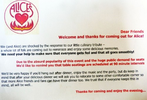 In addition there was a note on the table stating that Amy and Alice were blown away by the response. So would we be kind enough to vacate after 90 minutes and allow for the next seating of all of her Berkshire friends.