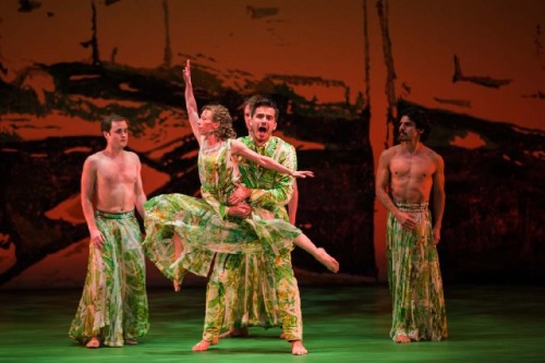 I don’t believe in God or the afterlife, but if I am wrong and I am judged to have been a good man, please God let my heavenly reward resemble the opening scene of Mark Morris’s often intoxicating version of Handel’s beguiling chamber opera “Acis and Galatea.” As the off-stage chorus sings the rustic-sublime, “O the pleasure of the plains!/ Happy nymphs and happy swains,/ Harmless, merry, free and gay,/ Dance and sport the hours away,” which makes me mist up every time I hear it, Morris fills the stage with his company of nymphs and shepherds dancing the most joyful set of couplings and uncouplings I’ve seen since his great “L’Allegro, il Penseroso ed il Moderato,” also set to Handel, some 20 years ago.