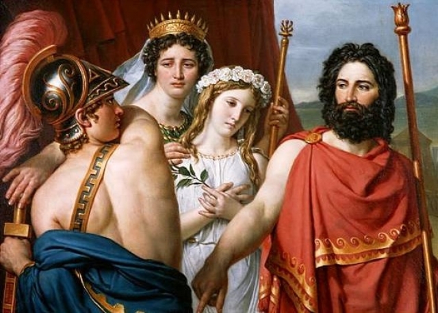 In the Homeric epic Paris, a prince of Troy, abducted Helen, the husband of Menelaus, the brother of the king. This insult to the manhood of all Greece must be avenged. Rowdy ruffians have slaughtered a herd tended by priests protected by the gods. There is no wind to launch the thousand ships until the gods are appeased by the sacrifice Agamemnon's daughter Iphigenia.