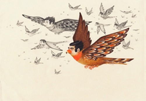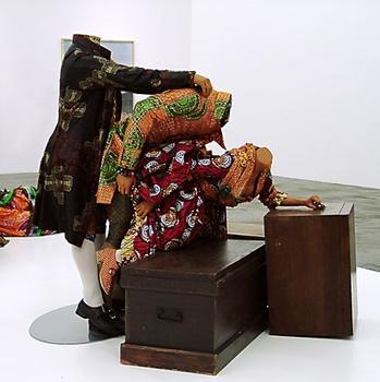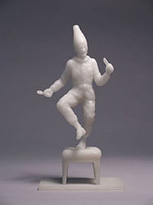 Like girls, curators just want to have fun. Here represented by the naughty doings of Punch in small white sculptures by Robert Taplin which one would expect to find in an upscale Venetian gift shop. We are amused to see Punch boffing an elegant lady but here it is just too cute compared to the same theme in life scale by the British artist Yinka Shonibare in work we have encountered at documenta and a solo show in Vienna. His work was about post colonialism and this? Jeff "Jeffu" Warmouth's send up of "Spudnik" with a video and several maquettes is genuinely hilarious. Be sure to spend time seeing the entire video even though the museum might have given us a bench to sit on. The work is indeed a very "original" and gonzo, sci fi, hypothesis of the secret life of potatoes and how they launch from dirtworld to outer space. Compared to which the fantasies of Ria Brodell entailing harpie birds and worm fuzzies were just dull. It just all looked so art school and unfunny. There is a ton of this kind of work going around like bird flu. Ditto the edgy stuff by Junghil Hong. Everyone is making cartoony art. And every cartoonist aspires to be thought of not as an illustrator but as an artist. I prefer my cartoons in the New Yorker and not in museums.