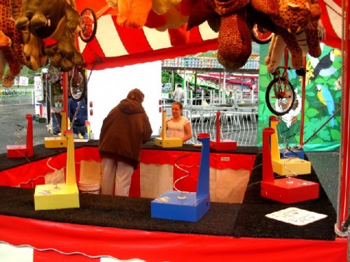 The Carnies were subdued enduring it all with stoic shrugs. We intereacted with a woman perched on the edge of her concession. I asked how's business. The classic response was "It's not all fun and games." Indeed. The Carnival is on the road some six months a year.