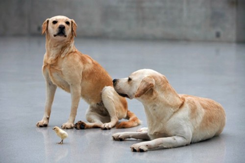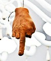 And what about the stuffed dogs? Between them is a stuffed chick. It was just too cute and absurdly stupid. This artist can be so over the top that it is just dumb. Or, suspended over our heads, the hand pointing down with one middle finger. The rest of the fingers were amputated. Duh.
