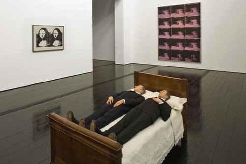 In another gallery the small scale of the bed with two supine realistic, clothed male figures made one wonder if indeed it was another work by Cattelan. There were other possible candidates. It was an amusing piece that reminded me of the British artist Ron Mueck and work I saw at the London National Gallery. Looking at photos of Cattelan the figure, or one of them, may have been a self portrait.