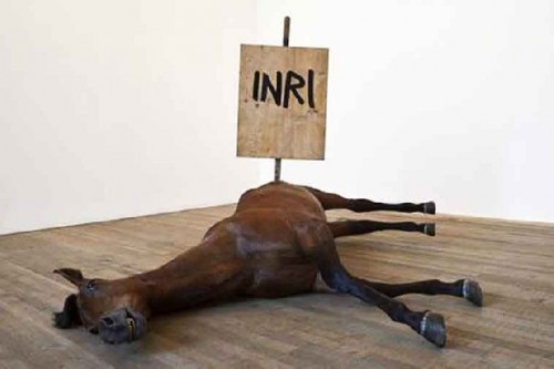 Just what does that have to do with a dead horse? It was our first encounter with an exhibition or intervention by the radical and controversial Italian artist Mauricio Cattelan. After visits to Houston the artist when working with Franklin Sirmans, Curator of Modern and Contemporary Art, devised an installation in which his work was dispersed throughout the museum.