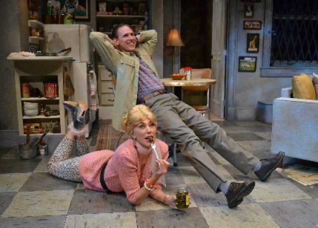 On a more positive note, as Artie dreams, ghost-like voices sing one of his mediocre songs. Those voices, which drift from offstage, emit a strange sound. It reverberates onstage, or more specifically, Shaughnessy’s 1965, Queens apartment. Scenic designer Victor A Becker renders it shabbily and realistically, but without a ceiling. The latter fact, along with those ghost-like voices and a striking, vivid visual at the end, help to reinforce the play’s surrealism.