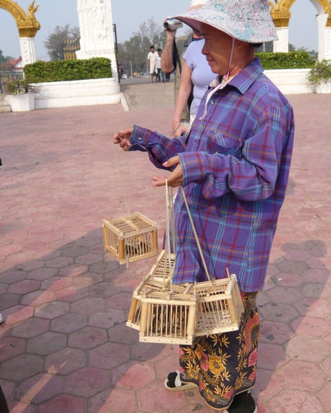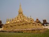 That Luang, or the Great Stupa, is the symbol of the Lao nation and the most important monument in the country. The breastbone of the Buddha is believed to rest at this site. Built in the 16th century, the multilevel stupa represents the different stages in Buddhist enlightenment: the lowest level represents the material world; the second, the world of appearances; the highest, the world of nothingness. Restored by the French in the 1930s, the dome is covered in gold leaf. Buddhist visitors come with flowers, incense, and candles, and circumambulate the stupa clockwise three times: once for the Buddha himself, once for the scriptures, and once for the monks. Meanwhile, vendors on the grounds sell caged birds to passers-by, who pay to release them as a good deed.