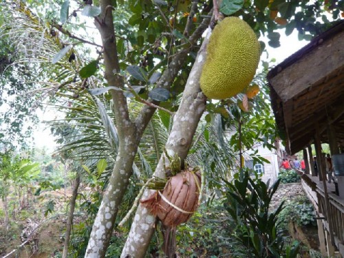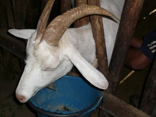 Dedicated to teaching environmentally friendly ways, the farm attracts international volunteers through its website to live and work there in exchange for accommodation. We visited an adobe house built by young people from Israel, and watched goats being milked and fed by volunteers from Singapore. Having started with four goats imported from the French Alps, the farm now boasts twenty goats, which provide milk for babies in addition to cheese. There are no dairy products in the traditional Laotian diet; such dairy products as can be found are generally imported from Thailand.
