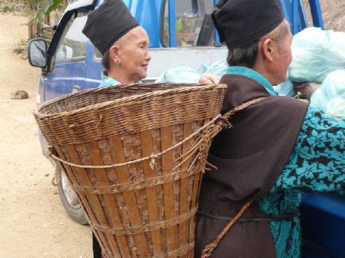 Originally from Mongolia, the Hmong are animist mountain people. Their language is similar to Tibetan. They have many children, and follow their own traditions and dress style. They are farmers, whose major crops are rice, corn, and chili peppers. Following the monsoon rains, the husband makes holes in the softened ground with a stick, and the wife then places seeds in these holes. In four months the rice is harvested using a sickle. There are two harvests each year; the rice field has to rotate every three years.