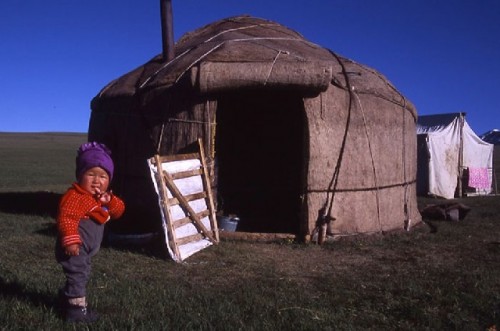 Nazgul is content for the next few years, but she has plans to grow the herd, sell the animals and move to the city, where she was raised. She does not want her daughter to lead this hard life. Nazgul has a Middle School education and studied Fashion Design. She can sew, design clothes and has a lovely voice. We hear her singing during a celebration, when neighbors from far away have come to visit. Very far away! Long shots show vistas devoid of any neighbors. The tradition of herding on the jailoo is dying out.