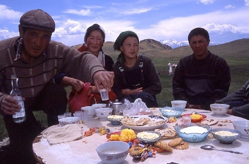 Age old customs are important to maintain. So when the visitors arrive, celebrations abound, such as a feast for all by offering flat breads, their own butter and milk products, dishes of meats, watermelon and more.