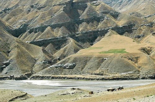 Oh, what a journey! Progress is made slowly while driving in the mountains on nearly bald tires and on endlessly rocky roads. The first van has a flat tire, which cannot be replaced. None is available! One waits around - the sense of time is timelessness! Someone will come by or someone is sent to the next village for assistance. A second van gets hired to continue the drive.