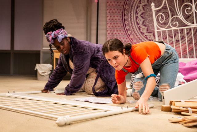 Rosie by Lily Houghton, brings us into a college dorm where Nina (Elize Kibler) and Alice (Denise Manning) are putting a bed together. We quickly learn that the dorm room has been the scene of a rape and that the victim, Nina, is trying to rebuild her environment. Manning provides both pathos and a well-crafted comedic element. Directed by Dayna Taymor, Rosie plays with the concept of being free and caged, as the young women dare to demand more.