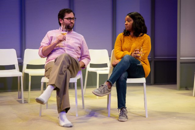 I'm Sorry by Amy Fox, tackles the #metoo phenomena with a different twist. As we arrive at the modernly uninviting offices where the manager, Silo (Moria Stone) stands guard and a small stool is the only seat provided for clients, our sympathies are tested. Clients Jake (Jason Lieberman) and Connor (Tim Barker) and Kim Brockington as the glamorous Mona, the owner of the firm, bring an interesting take on the realities of the accused. Mariah Lee as April, the young go-getting new member of this firm that helps the accused craft their apologies, is a pleasure to watch. Director Morgan Gold uses the space well and puts energy into an otherwise static set.