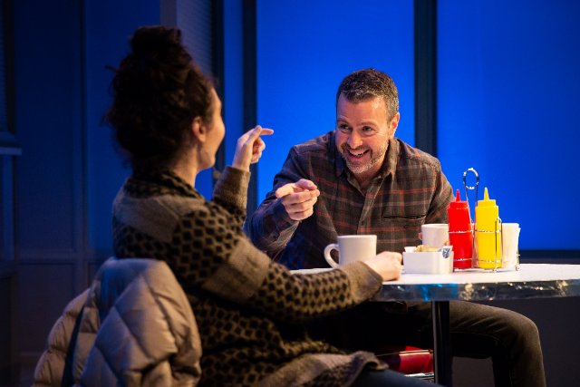 Wima Rivera as Vanessa in The Lepers, by Daniel Daminano, directed by Mathew Penn, gives us a substantive glimpse into the emotional cascade that is the world of a young woman struggling with sobriety. Vin (Joseph Cassese), her date at a local coffee shop, is predictably supportive and also destructive of her efforts.
