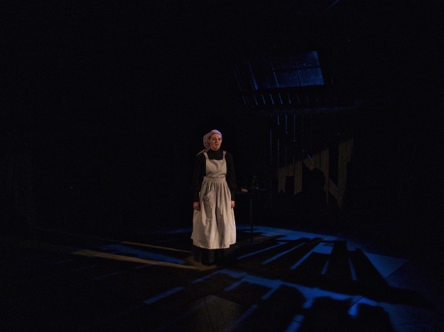 It is indeed a stark and somber evening brilliantly designed with minimalist restraint by Nathan W. Scheuer. With barest set and props Masha reveals her intimate thoughts and insights to crime while in jail awaiting to be sent to grim Siberia to serve an eight year sentence for the murder of her husband.