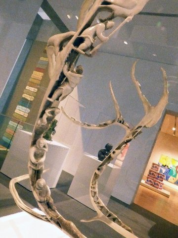 Wow! There, we received the first glimpse of what appeared to us as a grand shift to the current ‘Zeitgeist‘ of cultural Canada. Wherever, in art galleries and museums, there was evidence of a changed Canada from our last visit a decade ago. First Nations or indigenous work was on permanent display or in temporary exhibitions in many locations. They ranged from exquisite, traditional Inuit works, to First Nations artists expressing social and political criticism of past and current events, to contemporary artists, whose work fits well into the general artistic expression. If not evident, a label would establish provenance.