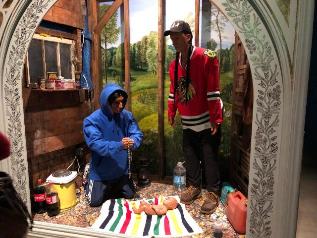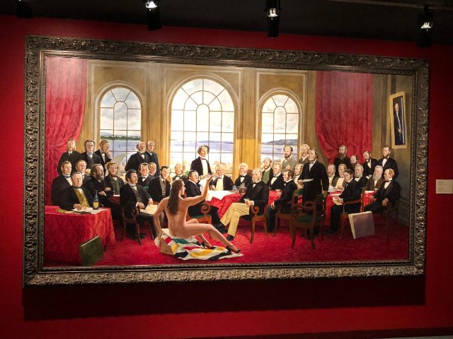 In Montreal, at the McCord Museum of Canadian History, we experienced the Kent Monkman exhibition, Shame and Prejudice: A Story of Resilience shortly before it closed on May 5th. This extensive and powerful traveling exhibition may also reach museums and audiences in the USA and it should. Monkman lays bare in his paintings and installations the truth about attempts to annihilate the original people or assimilate to colonialist and/or western values all First Nations throughout the Continent for more than 150 years. These facts played out in similar ways in the USA as well.