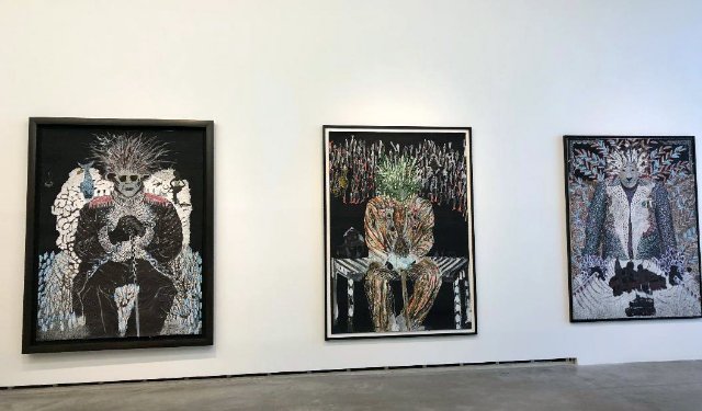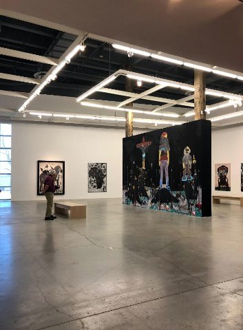 The Power Plant in Toronto has currently three major shows installed: By an African artist from Dakar, Senegal, Omar Ba, which is titled Same Dream. His monumental paintings and multi-painting installations may refer to dreams and nightmares about menacing African dictators of past and present and other truly fantastic metaphors.