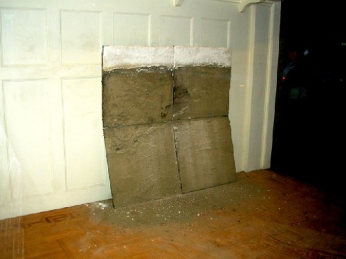 When we were hanging the piece I blew off some of the dust not knowing that I was not supposed to. That, in fact, dust is a primary material for the artist who commutes to an Adams studio from Stamford, Vermont. I am intrigued and hope to schedule a studio visit.