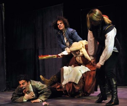 It is surely that incredible energy which is most remarkable about this high spirited and even manic production. They chase each other around the stage in madcap fight scenes with a lot of physical humor in the acting. You are exhausted keeping up with them. This is hardly the kind of nuanced treatment of the spoken word that one is used to in more classic productions. But this approach has an accent on youth and its sanguine approach may well have been most effective in bringing the Bard to audiences of school children. The energy level and charisma would undoubtedly make the work more accessible to young audiences.