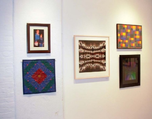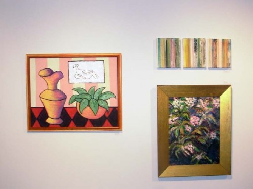 Phil and Gail Sellers are excited about a new basket that they have developed. Relatively new owners Bill and Dawn Guild are showing their graphics and paintings. They bought a loft from art and antiques dealers Jeff and Jane Hudson who are both back as participants in the salon. Jeff is showing a geometric abstraction and Jane a landscape photograph in a vintage frame.