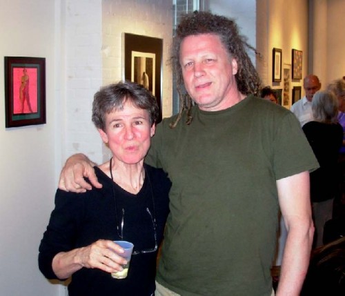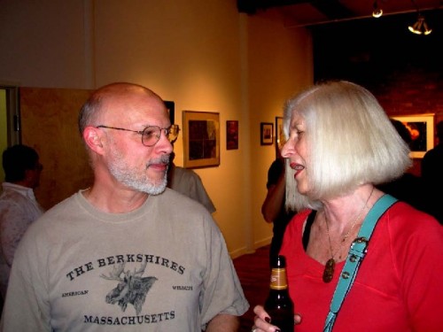 It's a tough job to install so much diverse work and make it all look good. This year that responsibility fell to the lighting designer and sculptor, Julie Seitel, who works in the Theater Department of Williams College. She did a first rate job and enjoyed the challenge. Julie said that she had lots of offers to help but politely told volunteers that she mostly wanted to do it herself. With a lot of help from her partner George Aitken. We found George outside taking a break during the opening. He related that he had enjoyed giving Julie a hand.