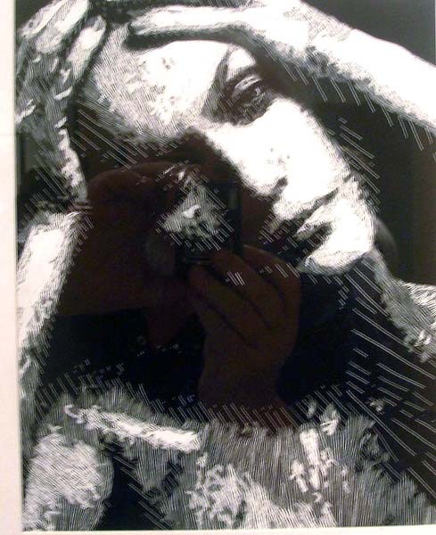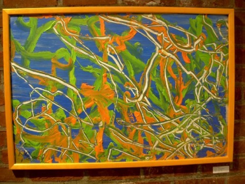With some 55 participating artists it is not possible to describe every work. There are so many highlights. Once again Andrew Klass who attended MCLA this year is showing a new scratch board piece. He was one of the real discoveries in the first Salon. The greatest find this time is the handicapped student Andrew J. Schlesinger who was discovered by Phil Sellers the curator of the student based show Young at Art that preceded the Salon. We wrote about the remarkable work and it was good to meet his parents. He is showing another of his truly remarkable abstract paintings.