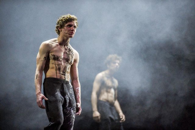 Equally depressing but impressive was the finale of the festival, Ulrich Rasche’s Das Grosse Heft (he big pad) from the Staatsschauspiel Dresden. Twins recap the vagaries of growing up in the thick of war, constantly moving on two rotating disks. They are endlessly talking and walking in misty grayness, supported by an anonymous cast and Wolfgang Amadeus Mozart’s haunting requiem in d-moll. One of the twins, Johannes Nussbaum, received one of the three prizes of the festival for an outstanding performance of a young actor.