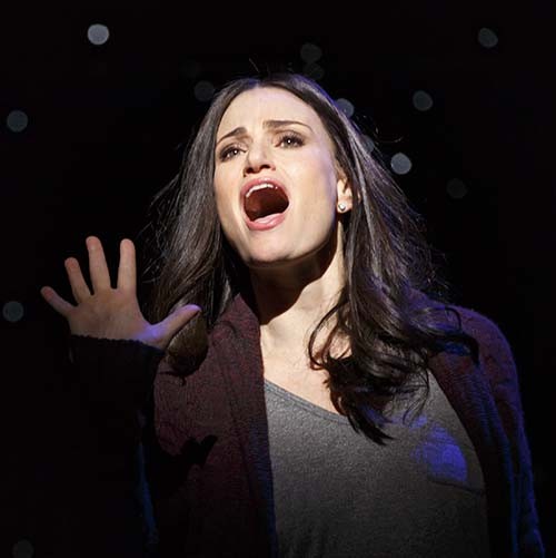 Which leads to an eruption of grieving in the show stopping highlight of the evening. She is set solo against a backdrop of stars. It’s full bore Menzel and worth every cent of a Broadway ticket.