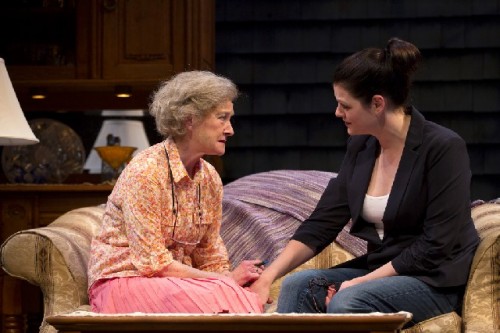 With an extremely wordy and preachy first act, the professorial Kate Shindle's Catherine frames the discussion and personal conflict in a seminar on feminist history and theory. Shannon Esper's anxious undergraduate student Avery and Annie McNamara's middleage, bored mom/wife Gwen make up her small discussion group. Catherine's mother Alice (Nancy E. Carroll) adroitly and most naturally punctuates the serious conversation with humor and generational experience.