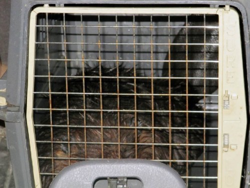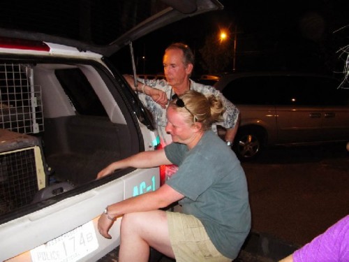 A mighty cheer went up when the beaver was finally bagged and placed in the back of the vehicle.