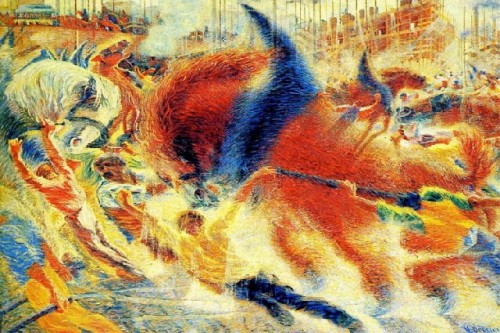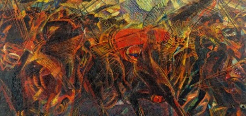 A thumbnail analysis of Futurist art is that it follows Cubism with the addition of force vectors, energy and celebration of the machine. In their xenophobic jingoism Marinetti and his gang embraced all aspects of modernism and the technologies of war that would restore Italy to the glory which had lapsed since the decline of the Roman Empire.