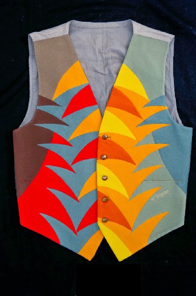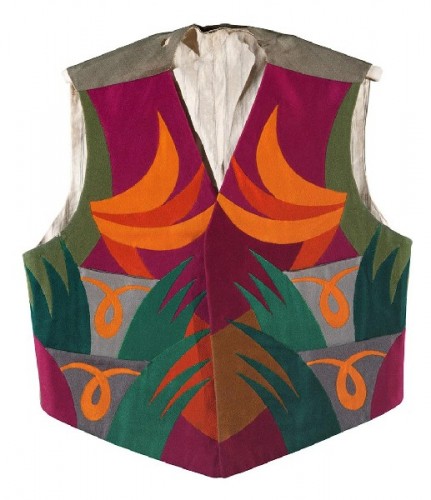 There are many discoveries in this survey particularly fashion with colorful vests and a room of furniture that includes ceramics by several artists. There are theater costumes and set designs, toys, animation, and a dining room ensemble. These artists notably include Gerardo Dottori and Enrico Prampolini. Graphic designs, particularly posters for Campari by Fortunato Depero, were a revelation. Other works by Depero include the painting “Stormy Patriot Marinetti: Psychological Portrait” and a cement-coated kiosk designed for a publishing house’s promotion at a book fair.