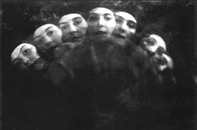 Other than a single interesting example with an elaborate set and stilted action the Futurists did not venture far into film. Similarly there is a smattering of photography. The images by Anton Giulio Bragaglia are particularly interesting as they convey the notion of blurred movement. They may be considered as precursors of the strobe studies of Harold Edgerton.